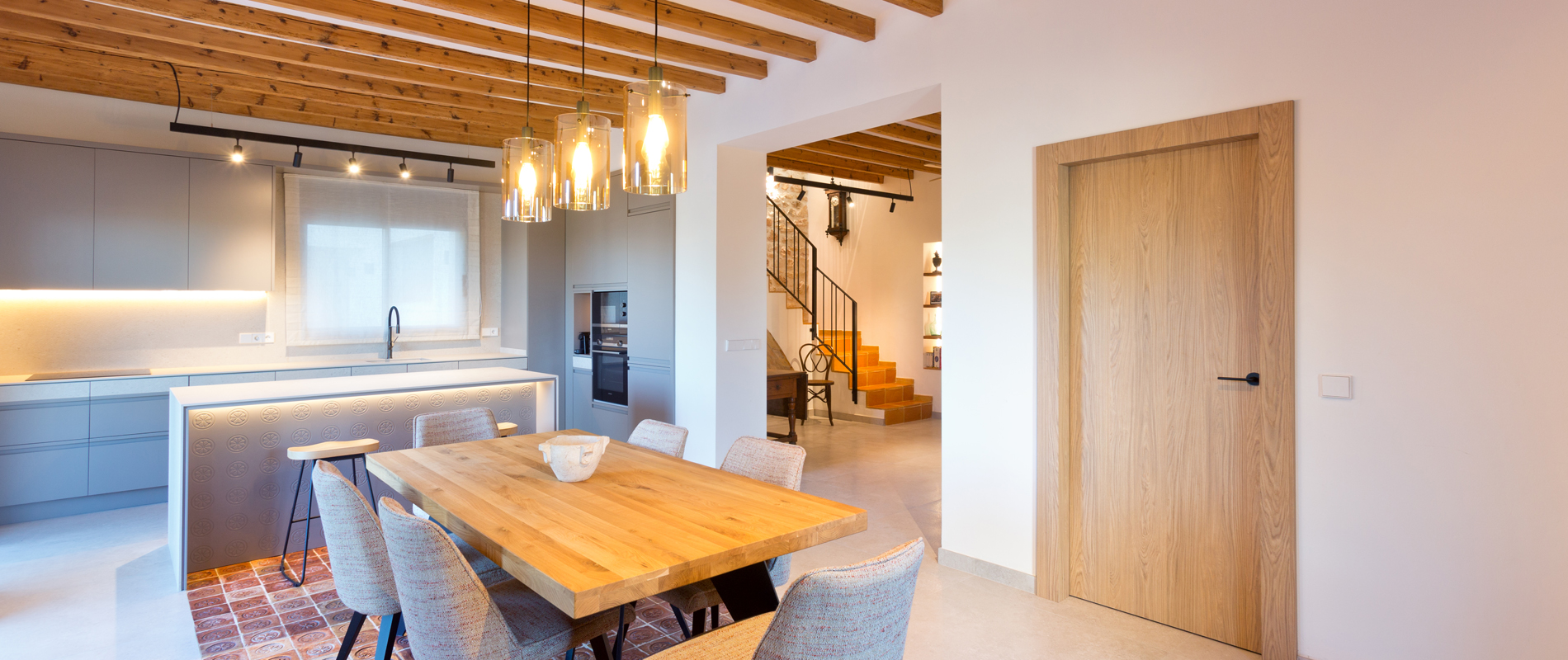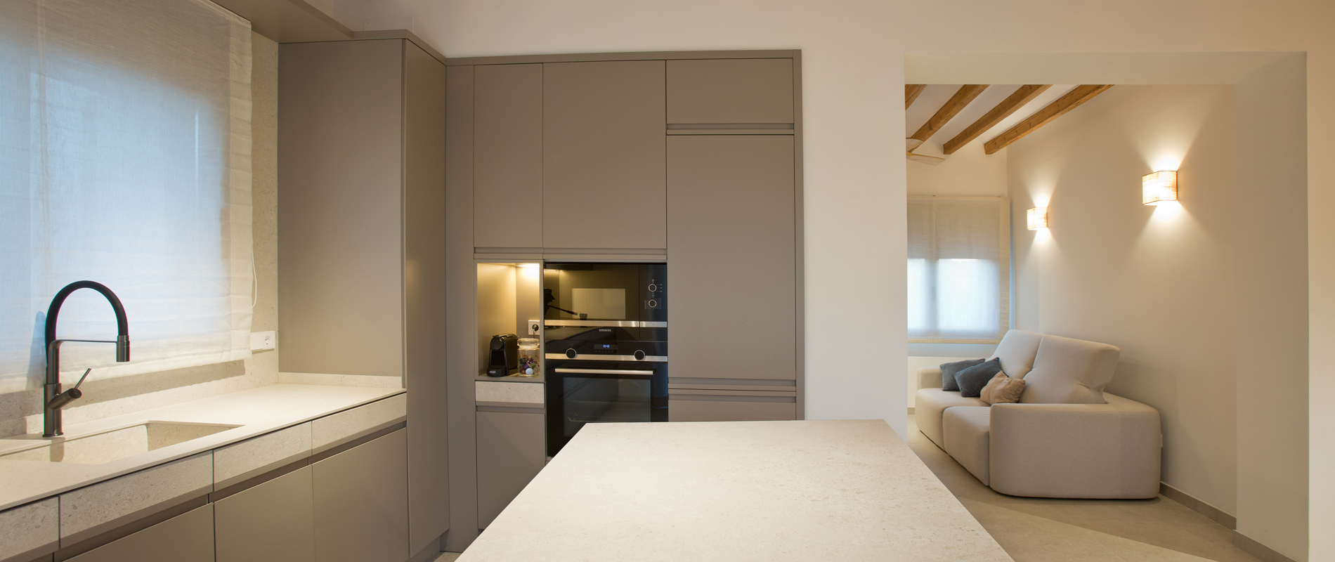 Desarrollo La intervención actualiza la vivienda para adaptarla a un modo de vida contemporáneo. Se reorganiza la distribución para generar espacios más amplios y conectados: la cocina se abre al salón, convirtiéndose en el corazón social de la casa, y la escalera original se integra en el conjunto, ampliando la sensación del espacio.