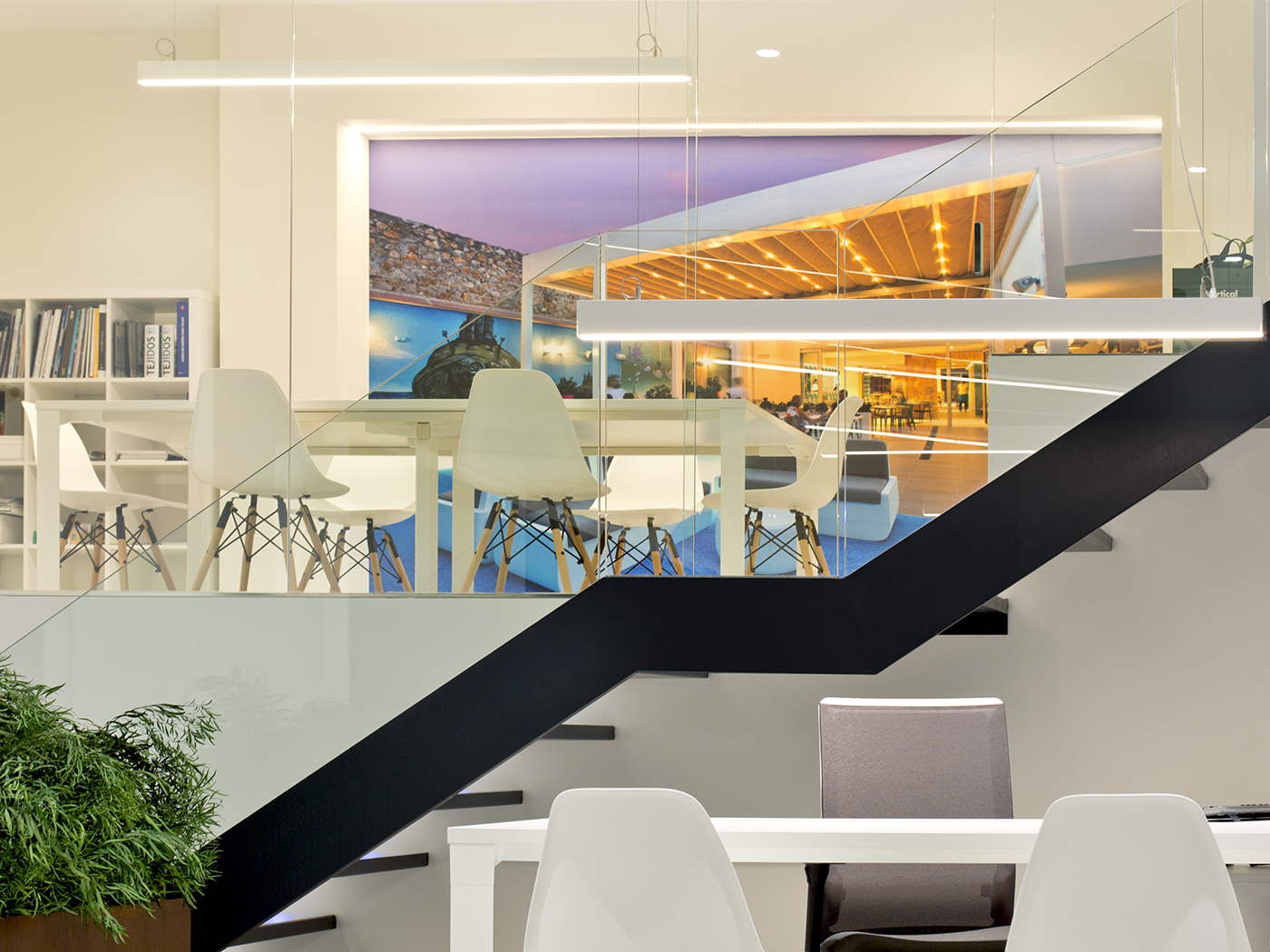 La superficie del local, junto con su altura nos han permitido poder ubicar este tipo de estructuras con un volumen proporcionado. La forma triangular del local no ha sido inconveniente para poder ofrecer una buena zonificación, ya que la gran dimensión de la fachada nos ha ayudado a reforzar la visibilidad exterior.