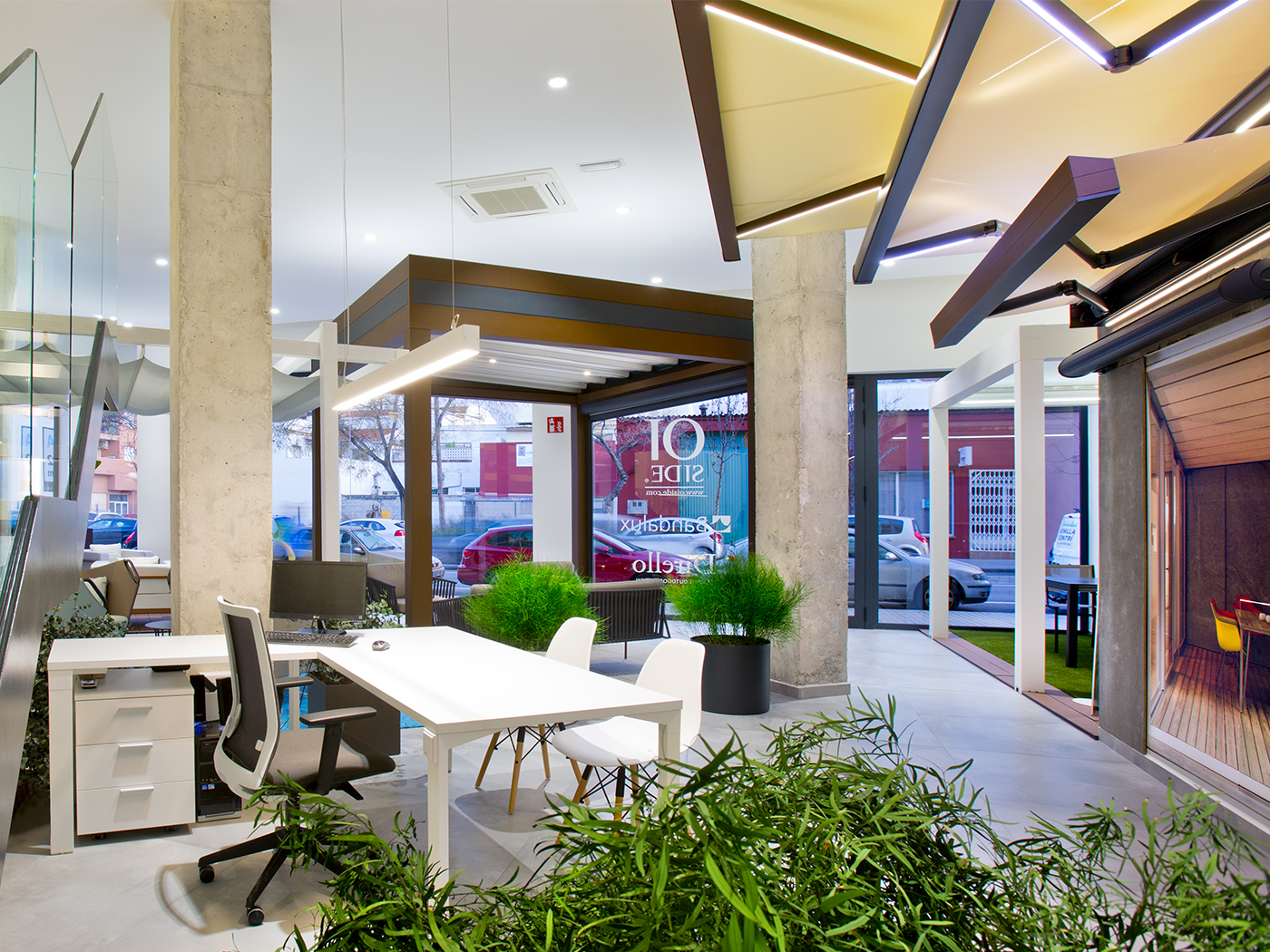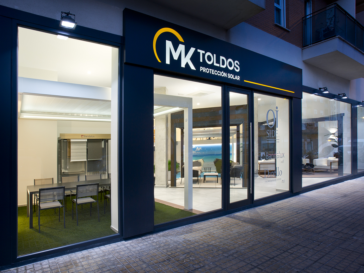 Espacio que deja todo el protagonismo a los materiales expuestos con una atractiva fachada que convierten MK Toldos en un referente en protección solar en nuestra comarca.