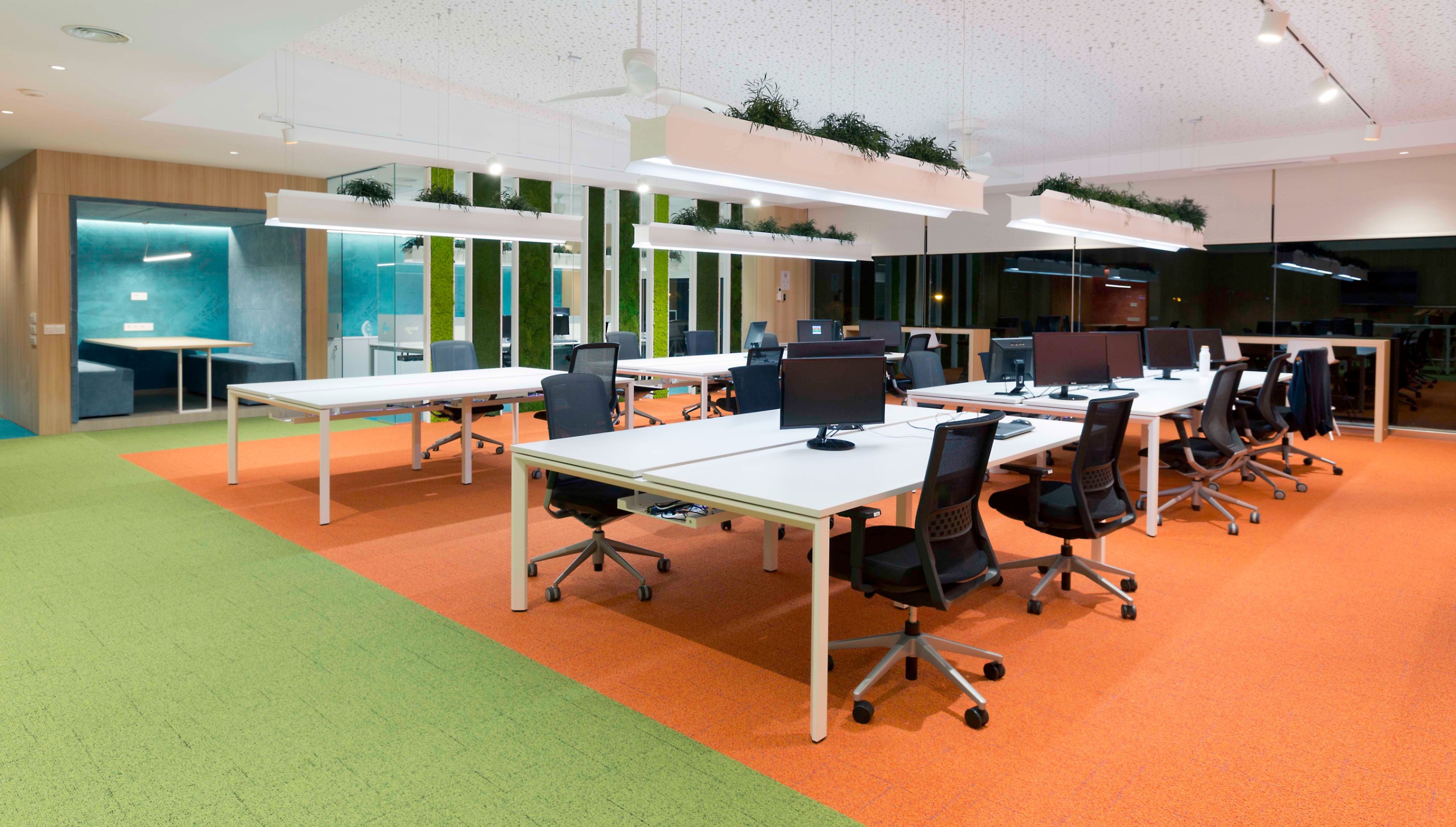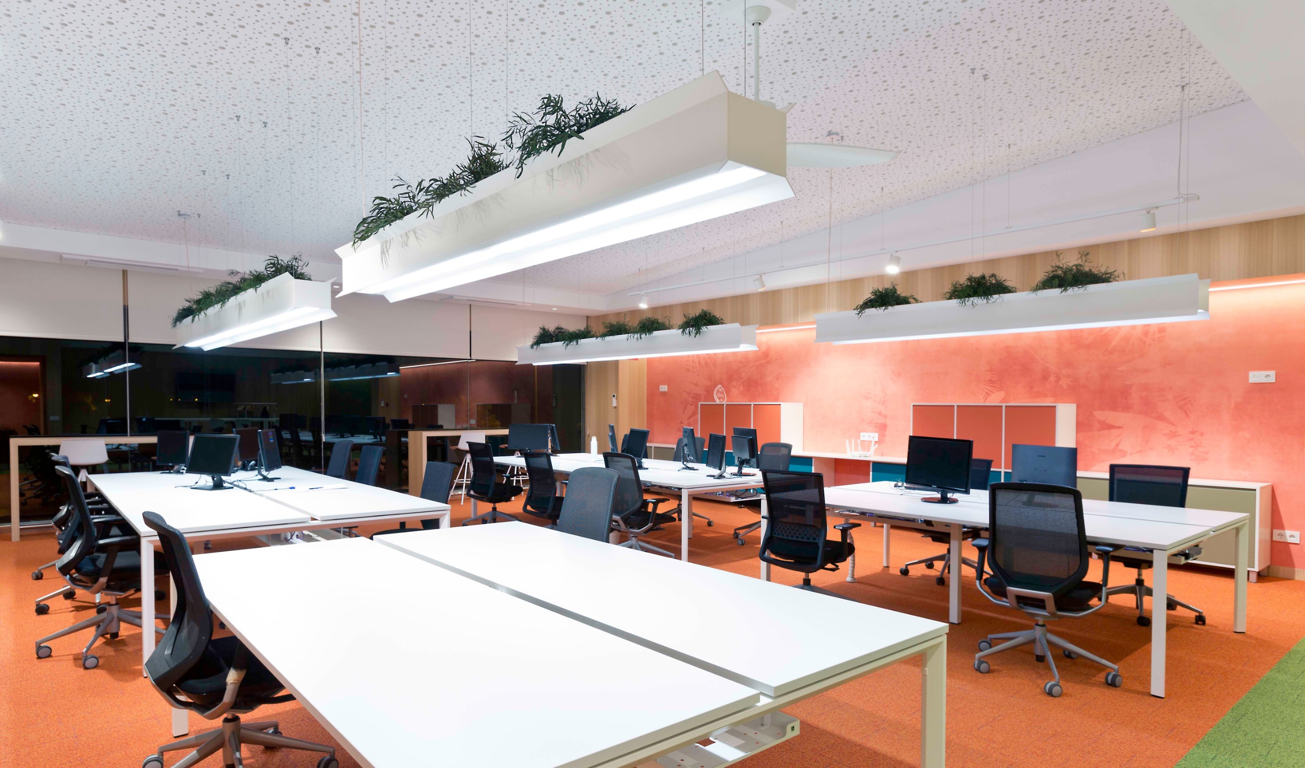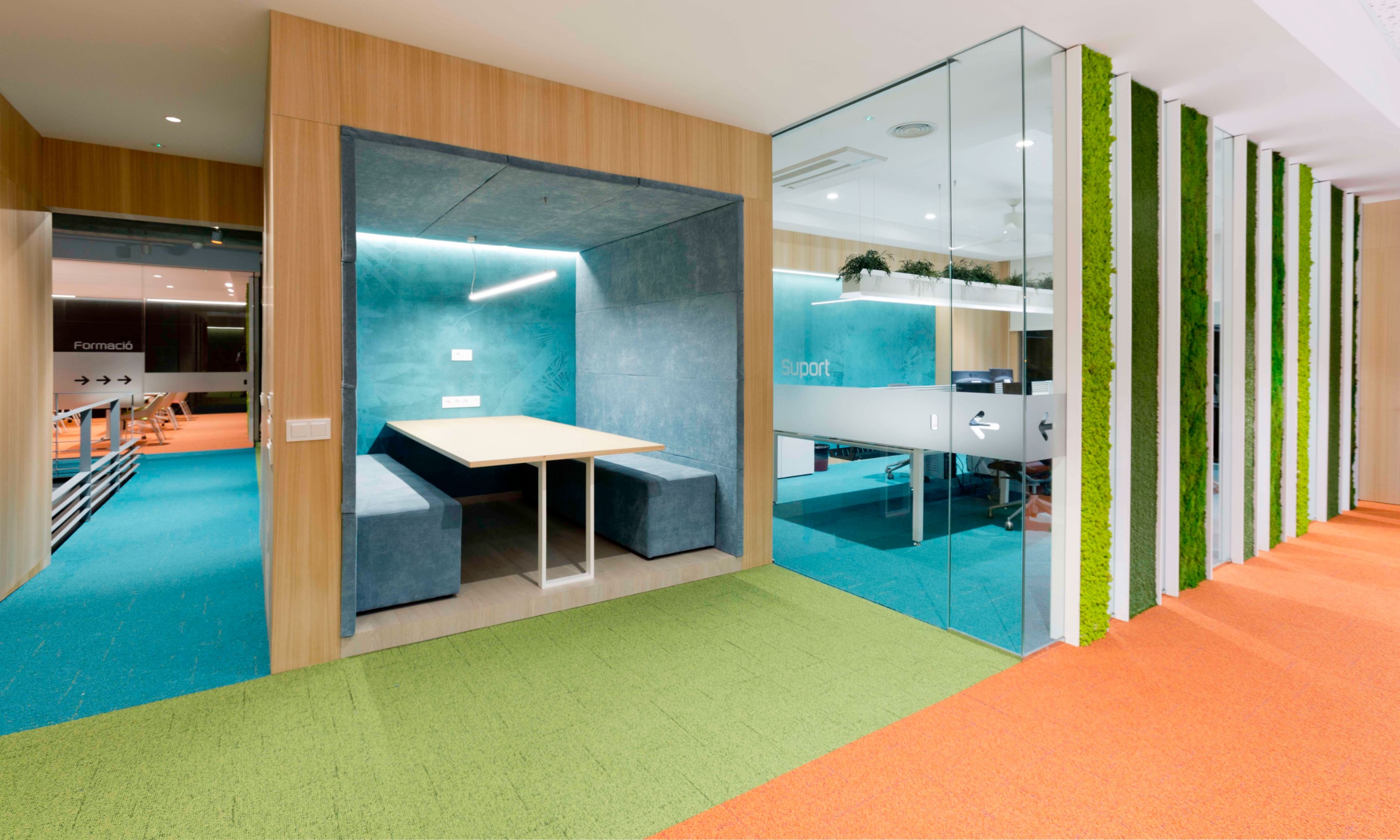 Desarrollo Analizar con los usuarios de las instalaciones sus reflexiones sobre el espacio en el que han desarrollado su actividad en estos años, ha sido el camino para encontrar un nuevo concepto. Ello nos ha llevado a sustituir el hormigón por la madera en las paredes y la moqueta en el suelo. También hemos añadido colores variados, mejorado la iluminación y la acústica de los espacios de trabajo. |