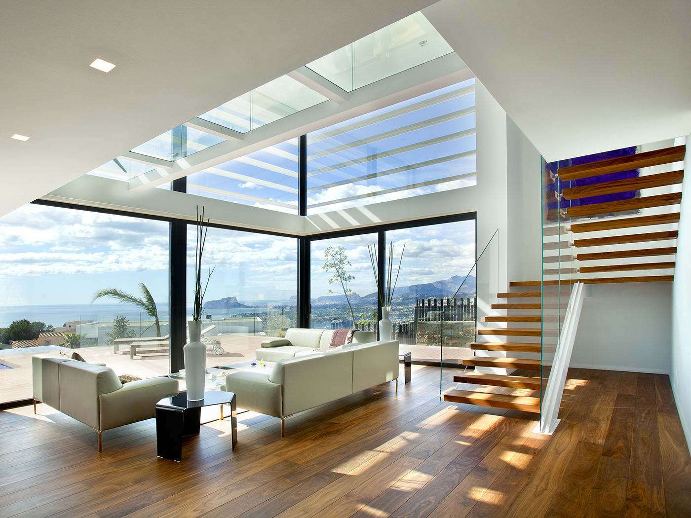 Vivienda de construcción contemporánea y abierta al exterior para Grupo Vapf. Ubicada en el sector Jazmines de la Cumbre del Sol con orientación hacia el Penyal d´Ifac y la Sierra de Bernia. Objetivo: Nueva imagen para vivienda en venta.